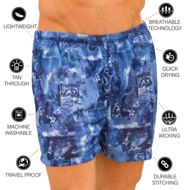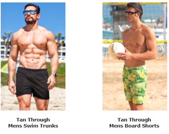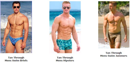 All of the men's tan-thru swimsuits have a front panel for increased modesty!